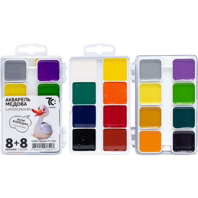 Акварель медова 16 кольорів, б/к, пластик 11,5х7,5см, 7С: 7C11603 (121089) :