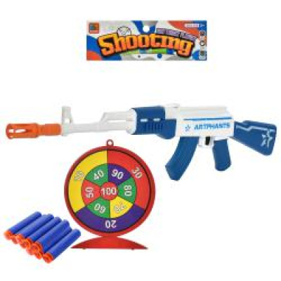 Автомат 625-4 (36шт) 66см, м'які кулі-присоски 10шт, мішень, в кульку, 20,5-61-5см : Пістолет 0621 (180шт) на пульках, 15см, в кор-ці 18-13-3,5см