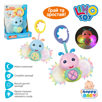 Брязкальце на коляску M 4102 (24шт) світлячок25см, муз,пісня(укр),св, на бат-ках,в кор-ці,20-23,5-6см