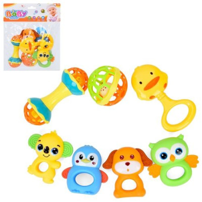 Брязкальце 508-157 (60шт) набір 7шт (тварини, м'яч, гиря), від 8см до 13см, прорізувач, у пакеті, 22-26-7см :
