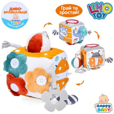 Брязкальце м'яке 9393A (20шт) куб, бізікуб, 12см,прорізувач, дзеркало, пискавка, застібка-блискавка, гудзики,тканина,у пакеті,12-12-12см :