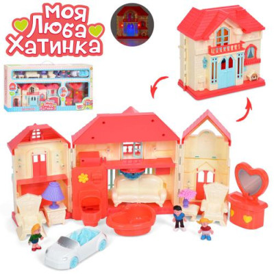Будиночок WD-933D (12шт) 38-19см, автомобіль 12см, фігурка 6см 3шт, меблі,звук, світло, на бат-ці. в кор-ці, 64-32-8см :