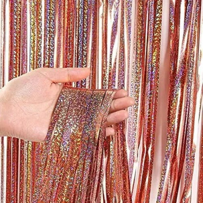 Декоративна шторка для фотозони - рожеве золото голограма 1x2 м 03216 :