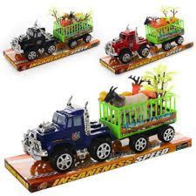 Джип трейлер 906-29 (60шт) інерц-я, з причепом, 28см, тварини 3шт, 3 кольори, в слюді, 31,5-12-10,5см :