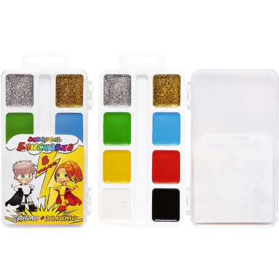 Фарби акварельні медові 8 кольорів "БЛИСКАВКА" (золото + срібло) в пласт. кор.,ТМ Тетрада ТЕ411999 (118890) :