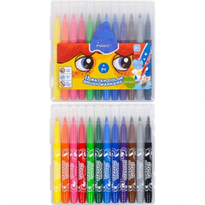 Фломастери MARCO, призначені для малювання та розфарбовування, допоможуть вашому малюкові створити неповторні яскраві картинки. Комплект включає в себе фломастери 12 яскравих насичених кольорів в різнокольорових пластикових корпусах (колір корпусу відповідає кольору чорнил).