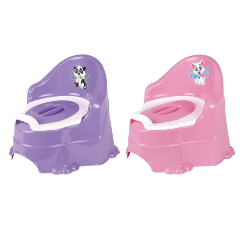 Горщик має округлі анатомічні форми, зручні для малюків. Стійка конструкція, висока спинка і підлокітники забезпечують комфорт і безпеку дитини. Внутрішній контейнер накривається кришкою. Його легко виймати і зручно мити. На ніжках є спеціальні накладки, які не ковзають.