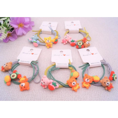 Тонка гумка для волосся з кольоровими фігурками ведмедиків та фруктів, буде добре тримати волосся зберігаючи задуману зачіску.