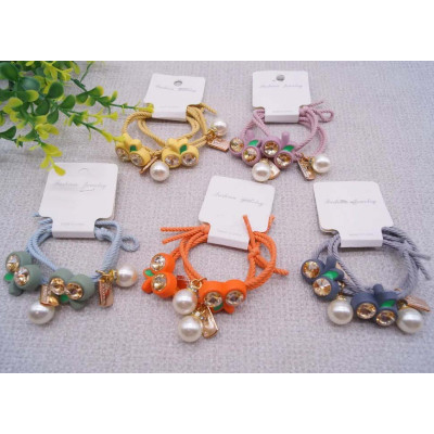 Тонка в'язана гумка для волосся з кольоровими блискучими вишеньками і перлинками буде добре тримати волосся зберігаючи зачіску.