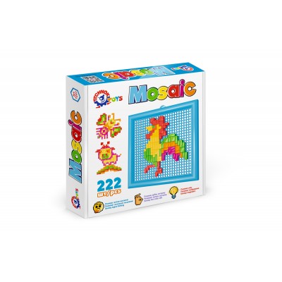 Мозаїка складається зі зручного пеналу-саквояжу з двома фіксаторами. Розміри фішок - 9 мм, 13 мм та 18 мм. Чотири кольори - 300 фішок. Рекомендується починати з картинок, запропонованих на коробці.