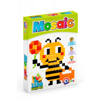 Мозаїка складається зі зручного пеналу-саквояжу з двома фіксаторами. Розміри фішок - 9 мм, 13 мм та 18 мм. Чотири кольори - 300 фішок. Рекомендується починати з картинок, запропонованих на коробці.