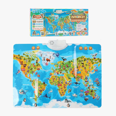 Інтерактивний плакат «Мапа світу» 97899 (45) "WToys", ОЗВУЧУВАННЯ УКРАЇНСЬКОЮ МОВОЮ, назви тварин, океанів, континентів, “екзамен”, регулювання гучнос