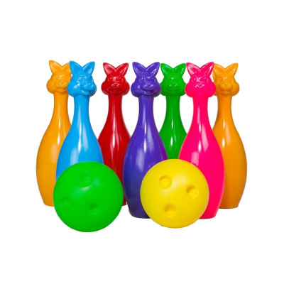 Дитяча гра Кеглі малюки від виробника ТМ Бамсік захопить дитину і його батьків. Вдома чи на подвір'ї, збирайтеся сім'єю або компанією і проводите турніри. У набір входить 7 кеглів і дві різнокольорових кулі. Дітям в грі буде розвиватися окомір, спритність.
