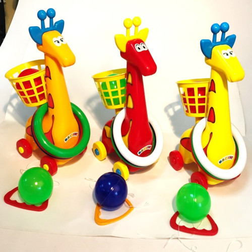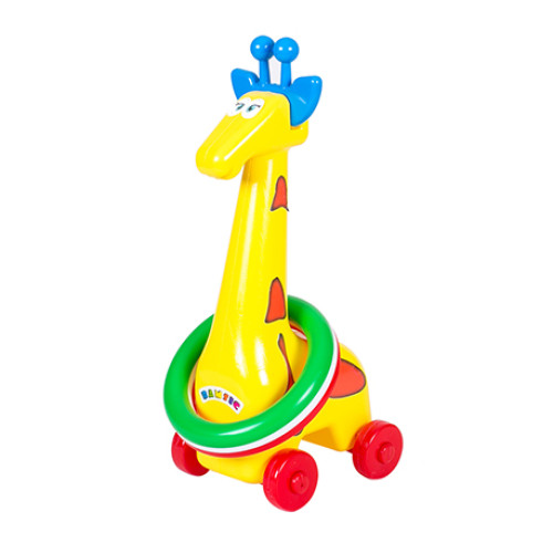Кільцекид "Жирафа" 1104 Бамсік : Кільцекид Жираф виготовлений з якісного матеріалу .У набір входить три кільця дві кульки. Жираф на колесах також має шнурок з ручкою .