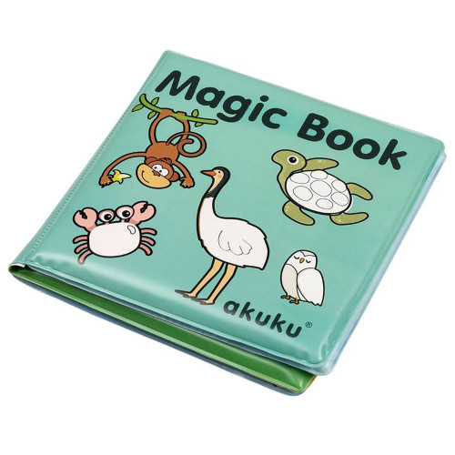 Унікальна книга АКУКУ надзвичайно захоплююче відкриває дітям світ кольорів, тварин і природи. Досить трохи води, щоб малюнки ожили під мізинцями або пензлем. Коли ілюстрації висихають, кольори зникають, що дозволяє нескінченно грати та досліджувати. Картинки, адаптовані до віку дитини, підтримують пізнавальний розвиток, знайомлячи дітей зі світом фауни та флори. Книга абсолютно безпечна для дітей, виготовлена з ніжних, м'яких, але водночас міцних і водонепроникних матеріалів. Стимулює розвиток сприйняття, дрібної моторики, пам'яті та концентрації. Крім того, це стимулює допитливість і бажання відкривати нове.