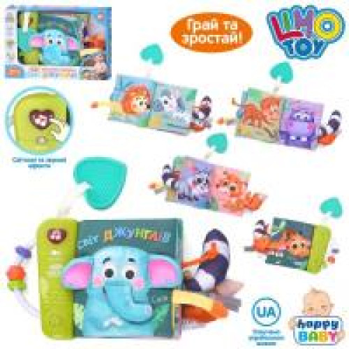 Книжка HB 0074 (30шт) Світ джунглів, тварини, музика-звук(УКР), світло, чистомовки, 3 пісні, прорізувач, пискавка, шуршить, дзеркало, назви на укр, н