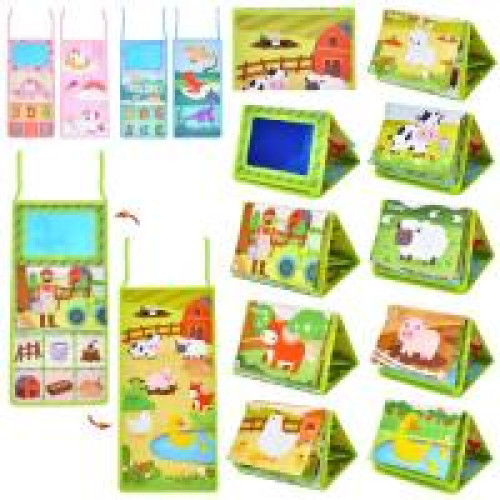 Книжка QBX192A-93A-94A (60шт) 45-21,5см, шуршить, дзеркало, 2в1(підвіска на ліжко, зав'язки), 3 види (домашні тварини, динозаври, єдиноріг), у пакеті :