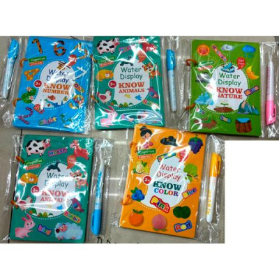 Книжка для малювання INT 0025 (40шт) для малювання водою, 73,5-18см, маркер для води, картинки з липучками, 4 види, у пакеті, 19,5-18-2см :