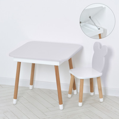 Комплект ARINWOOD Ведмедик Box Сіро-білий (столик з ящиком + стілець) 07-025G-BOX :