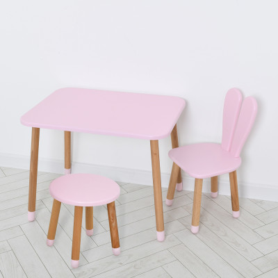 Комплект ARINWOOD Зайчик Рожевий (столик 500×680 + стільчик + табурет) 04-027R+SET :