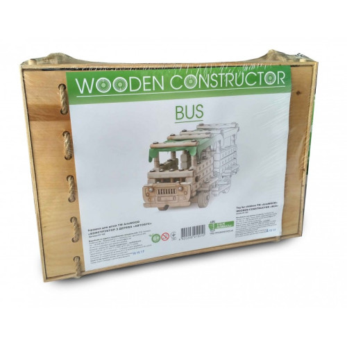 Набір виготовлений зі справжнього букового дерева, і збирається за допомогою різних кріпильних елементів, які включені в комплект. Скласти "Автобус" Вашому малюку допоможуть спеціальна дитяча викрутка та фанерний ключик, які також є в наборі. Вже зібрану машинку можна використовувати як іграшку, адже висока якість елементів та продумана конструкція гарантують міцність та довговічність готової моделі.
