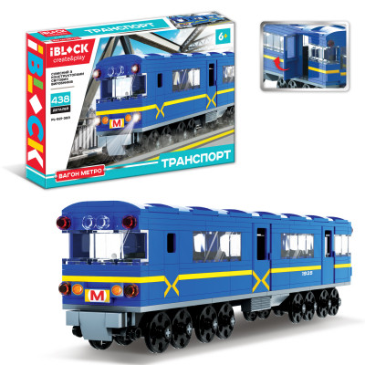 Конструктор IBLOCK PL-921-383 (12шт) ТРАНСПОРТ Вагон-Метро 438 дет., інструкція та наліпки у комплекті, короб. 46*28,5*6,4см :