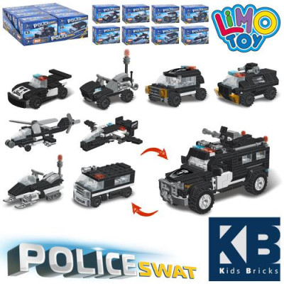 Конструктор KB 5901 (144шт) поліція, транспорт, від 42 дет, 8шт (8видів) в дисплеї, 25,5-18,5-9см :