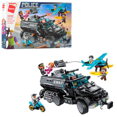 Конструктор Qman 1930 (6шт) военный джип/самолет/мотоцикл, фигурки,970дет, в кор-ке,56-36-7см : Конструктор Qman 1929 (24шт) поліція, трейлер, машина, фігурки, 441деталей , в кор-ці, 37-28-7см