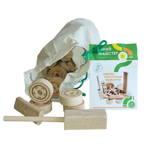 Завдяки цьому набору дитина зможе створювати різного роду транспорт, різний за формою й розміром, за допомогою елементів з отворами набору кілків та інструментів.