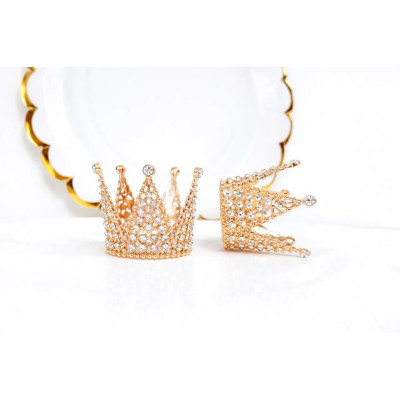 Корона металева міні рожеве золото з білим камінням 3x3,2см 16603 :