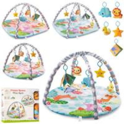 Килимок для немовляти JL640-1ABCD (12шт) дуга 2шт, підвіски плюш 5шт, 4вида, в кор-ці, 58-45,5-8,5см :