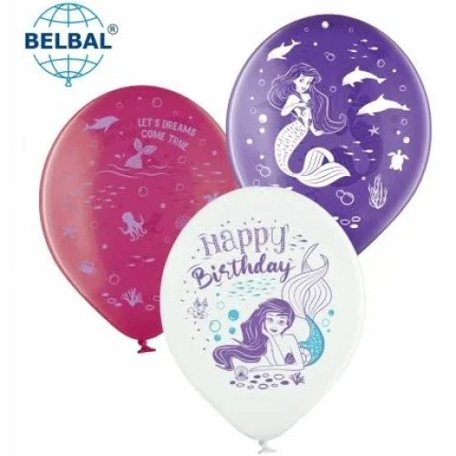 Латексні кульки Belbal Русалонька, фіолетовий, білий, рожевий, кристал 30 см 12" (25 шт.) :