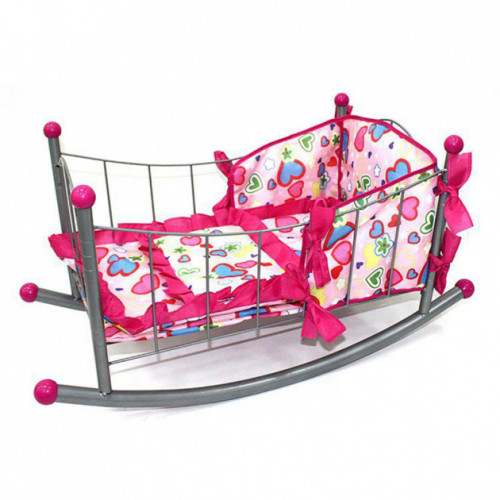 В ліжка металевий каркас, який легко збирається. Також у ліжечку є матрацик для ляльки, подушечка, ковдрочка. Колиска встановлена на дуги, тому її можна качати, укладаючи спати улюблену ляльку.