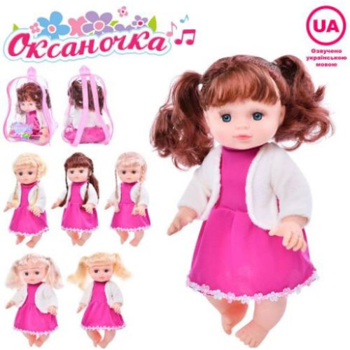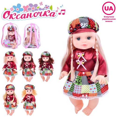 Лялька M 5061-3 I UA (18шт) Оксаночка, 33см, музика-звук (укр), пісня, рахує, гра у схованки,вірш, 6 видів, на бат(табл), в рюкзаку, 21-28-14см :