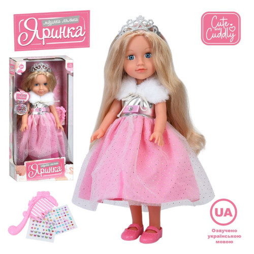 Лялька M 6229 I UA (18шт) Яринка, 40см, музика(укр), пісні, гребінець, стрази-наліпки, на бат(табл), в кор-ці, 20-43-9,5см :