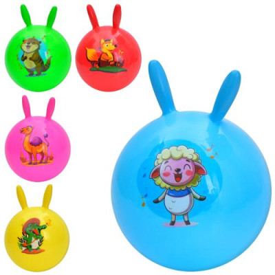 М'яч дитячий MS 4404 (144шт) 9 дюймів, з ріжками, 57-60г, принт-тварина, мікс видів / 5 кольорів, :