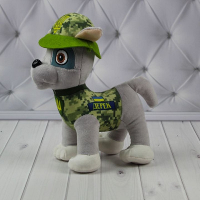 М'яка іграшка патріотичний песик Дерек з добрими очима, милими вушками та маленьким хвостиком, дуже любить гратися. Він подобається всім діткам, адже хто не любить милих песиків? Вони вірні друзі і товариші. Також, про собачок знято багато мультиків і написано багато казок.