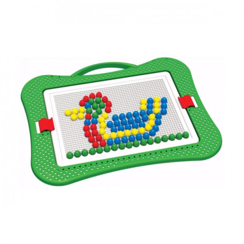 Мозаїка складається з зручного пенала-саквояжа з двома фіксаторами. Розмір фішки - 13 мм. Чотири кольору - 240 фішок. Для дітей від 5-ти років.