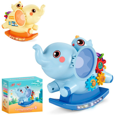 Музична іграшка HD9329 (48шт) слон-гойдалка, 18см, музика, світло, рухливий, шестерні,пташка-тріскачка,2 кольори, в кор-ці, 17,5-15-9см :