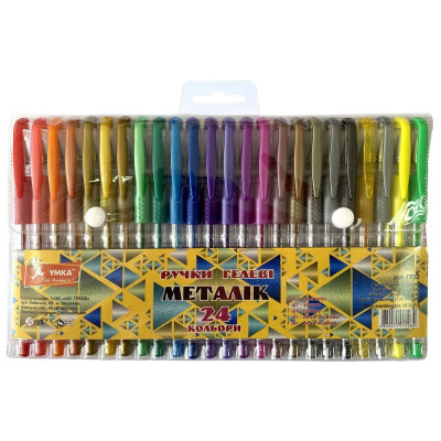н-р ручок гел., прогум. грип, 24кол, Metallic,ГР52, УМКА : Набір ручок гель, прогум грип, 24 кол, Metallic, ГР52, УМКА