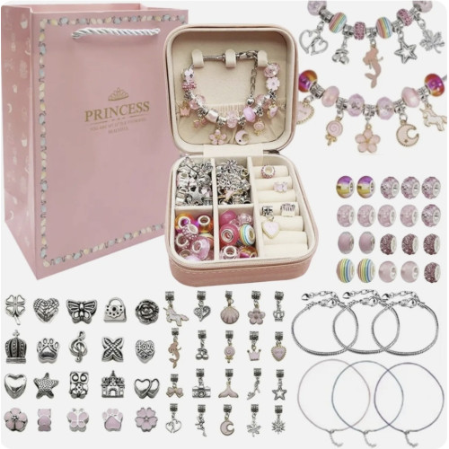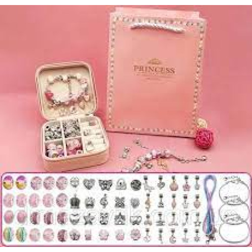 Набір для створення браслетів у коробці PANDORA футлярі розовий з сумочкою : Набір для створення браслетів у коробці PANDORA футляр рожевий з сумочкою