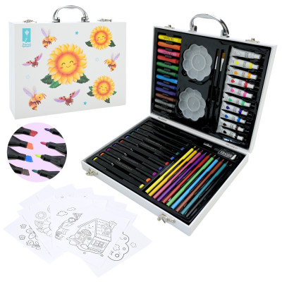 Набір для творчого малювання PL-725-35 (20шт) 48 предмета,крейда,акварельні фарби,кольорові олівці,18 аркушів розмальовок, валіза 30*5*24 см :