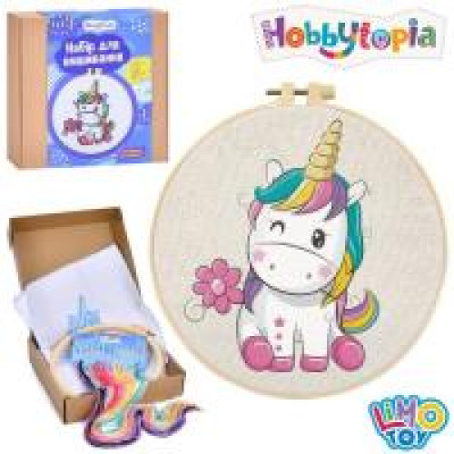 Набір для творчості DYEK1021 (40шт) набір для вишивання, вишивка, Єдиноріг, п'яльце 20см, голки, тканина з малюнком, нитки, в кор-ці, 22-20,5-5,5см :