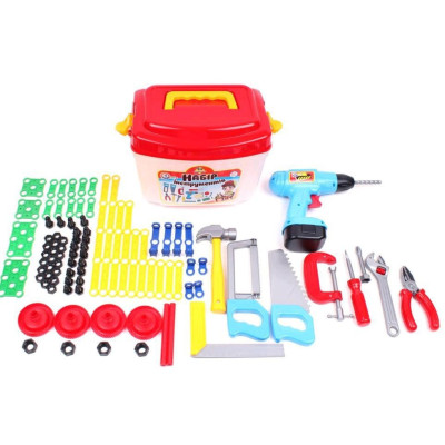 В нашому новому наборі «Набір інструментів ТехноК» арт. 4395 окрім «класичного» набору інструментів (молоток, пилочки, викрутки, плоскогубці та ін.) та дрилю є ще і конструктивні елементи – пластикові планки, кутники, пластини, гвинтики та гайки. Це чудова нагода для малюка вивчити принципи роботи різьбових з’єднань, що, безумовно, стане в нагоді в «дорослому» житті.