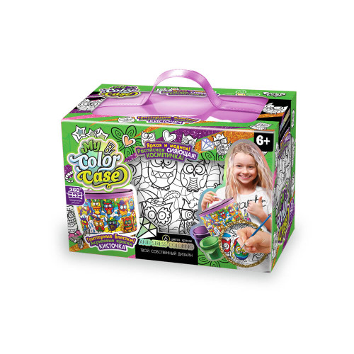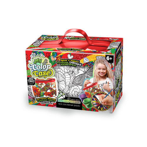 Малюнок виконаний в техніці ANTISTRESS, розфарбовуючи його, Ви не просто малюєте, а ще й відпочиваєте, розслабляючись і отримуючи задоволення від творчого процесу. Розфарбовувати косметичку можна як показано на упаковці, або на свій розсуд. А додавши гліттер в акриловий лак, Ви зможете декорувати будь-які зафарбовані елементи на малюнку, надаючи своєму творінню сяючий блиск.