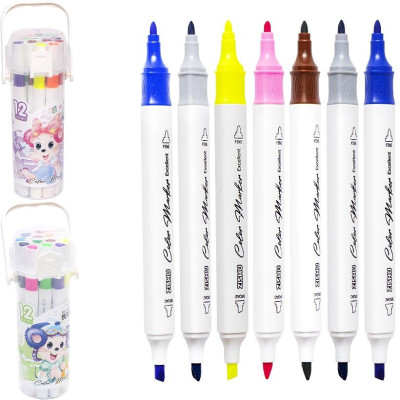 Набір маркерів для малювання 12 кольорів 241-12 скошений/круглий наконечник, у пластиковому боксі (118620) :