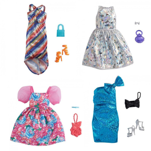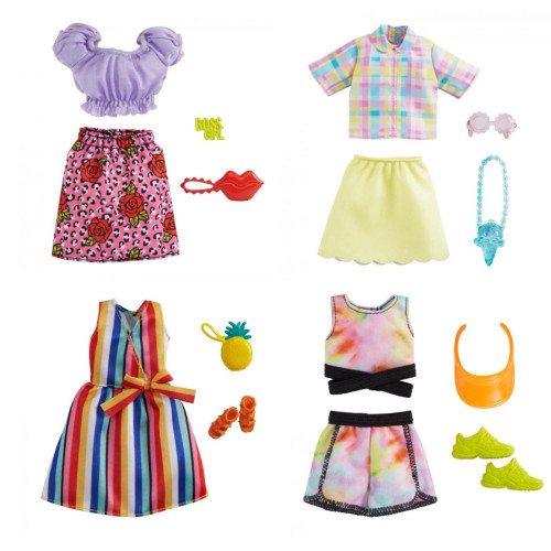 Вбрання для ляльки Barbie відповідає останнім модним тенденціям. Кожен набір включає сукню або комплект верх-низ та два аксесуари, що ідеально довершують її стильний образ. Комбінуйте з іншим вбранням та віднайдіть свій власний стиль. Вбрання підійде для більшості ляльок Barbie. Упаковку можна використовувати, наприклад, для зберігання дрібничок, аксесуарів тощо. Ляльки продаються окремо. Кольори та зовнішній вигляд можуть відрізнятися.
