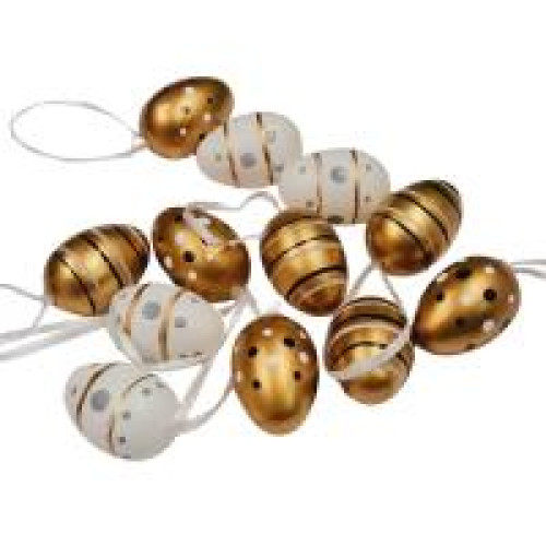 Набір "Яйця декоративні в тубусі міні" біло-золоті 4 см 12 шт 7039-0095 :