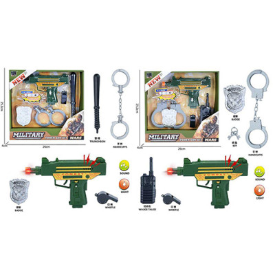 Набір зі зброєю JS024-29 (36шт)автомат,рація,наручники,звук,на бат-ці(табл),2 види, в кор-ці 26-25-4см :