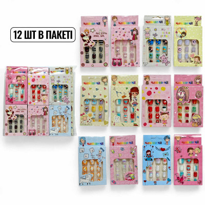 Накладні дитячі нігті 12 шт в пакеті МІКС :